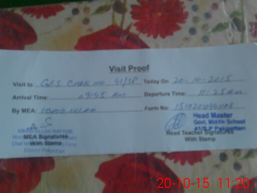 | Certified that this School was Inspected by the Undersigned MEA/DMO Today and the Information Stated Above is as Per Record. | |||||