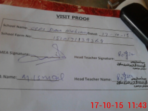 | Attendance Register | Head Teacher | MEA with School | Visit Proof |