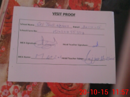 | Attendance Register | Head Teacher | MEA with School | Visit Proof |