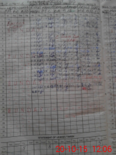 | CNIC | Full Name | Designation | R/C | Absence During Last Calender Month |
