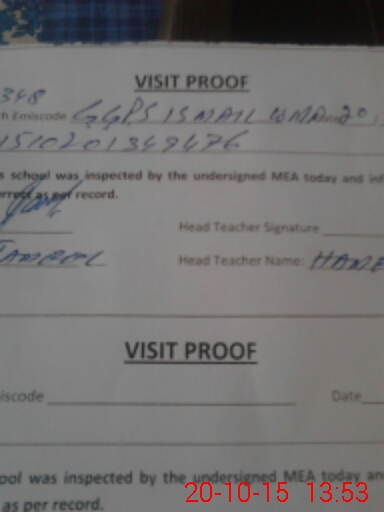 | Attendance Register | Head Teacher | MEA with School | Visit Proof |