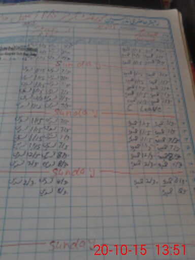 | CNIC | Full Name | Designation | R/C | Absence During Last Calender Month |