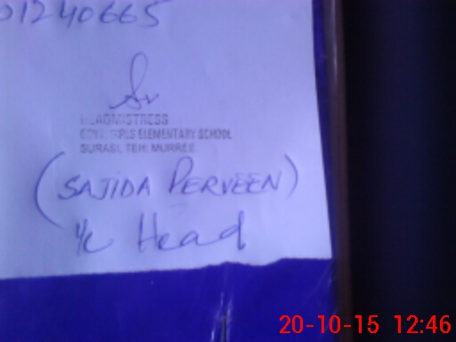| Name: Am**** Na**** Designation: (School Headmaster's/Headmistress's) SSE ENG Phone/Cell Number: 03**** |