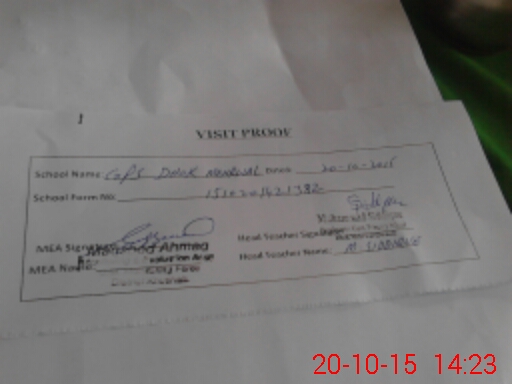| Attendance Register | Head Teacher | MEA with School | Visit Proof |