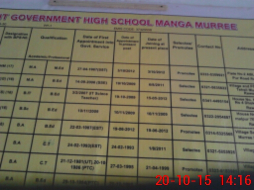 | District: MURREE | Tehsil: MURREE | Markaz: SECONDARY-WING | Level: High | |