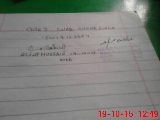 | Name: Sh**** Al**** Da**** Designation: (School Headmaster's/Headmistress's) EST Phone/Cell Number: 03**** |