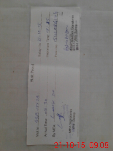 | Monitoring Date: 21-10-2015 | Start Time: 21-10-2015 08:24 AM | End Time: 21-10-2015 09:09 AM | Name of MEA: Ch**** Di**** | |