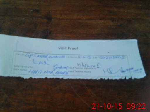 | Attendance Register | Head Teacher | MEA with School | Visit Proof |