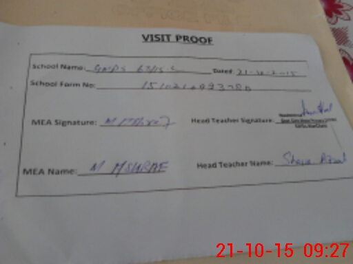 | Attendance Register | Head Teacher | MEA with School | Visit Proof |
