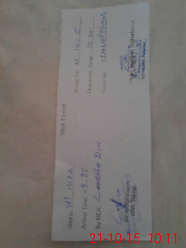 | Monitoring Date: 21-10-2015 | Start Time: 21-10-2015 09:34 AM | End Time: 21-10-2015 10:12 AM | Name of MEA: Ch**** Di**** | |