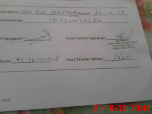 | Name: RU**** KA**** Designation: (School Headmaster's/Headmistress's) PST Phone/Cell Number: 03**** |