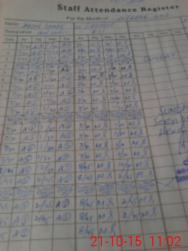 | CNIC | Full Name | Designation | R/C | Absence During Last Calender Month |
