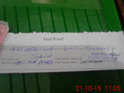 | Attendance Register | Head Teacher | MEA with School | Visit Proof |