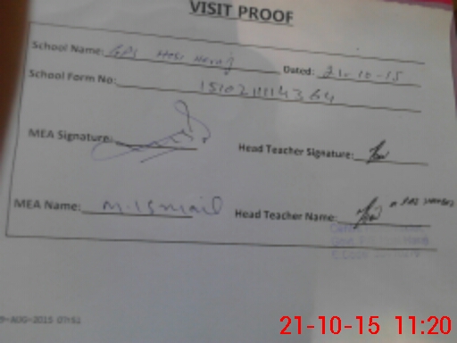 | Certified that this School was Inspected by the Undersigned MEA/DMO Today and the Information Stated Above is as Per Record. | |||||
