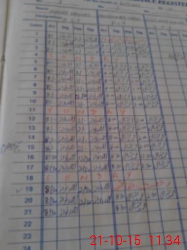 | CNIC | Full Name | Designation | R/C | Absence During Last Calender Month |