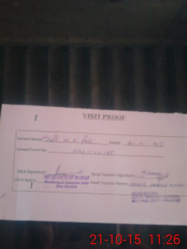 | Attendance Register | Head Teacher | MEA with School | Visit Proof |