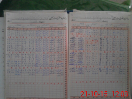 | CNIC | Full Name | Designation | R/C | Absence During Last Calender Month |