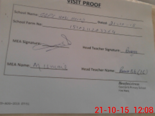 | Attendance Register | Head Teacher | MEA with School | Visit Proof |