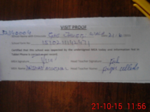 | Attendance Register | Head Teacher | MEA with School | Visit Proof |