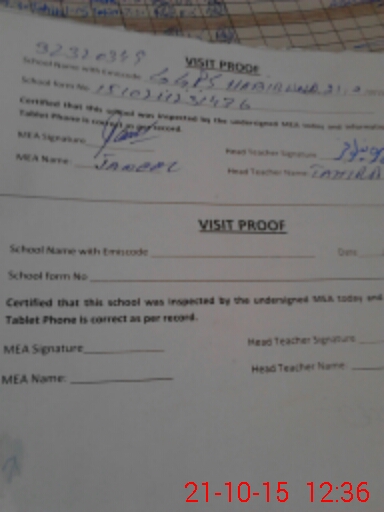 | Attendance Register | Head Teacher | MEA with School | Visit Proof |