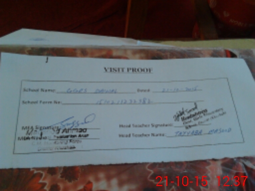 | Attendance Register | Head Teacher | MEA with School | Visit Proof |