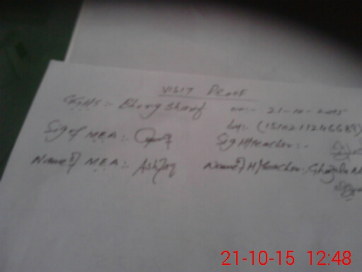 | Monitoring Date: 21-10-2015 | Start Time: 21-10-2015 12:01 PM | End Time: 21-10-2015 12:53 PM | Name of MEA: Mu**** As**** | |