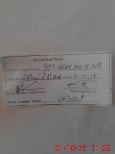 | EMIS Code: 38410142 | Name of School: GPS CHAK NO.9 NB | |||
