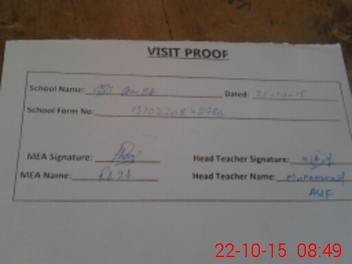 | Attendance Register | Head Teacher | MEA with School | Visit Proof |