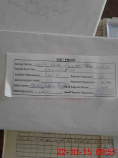 | Attendance Register | Head Teacher | MEA with School | Visit Proof |