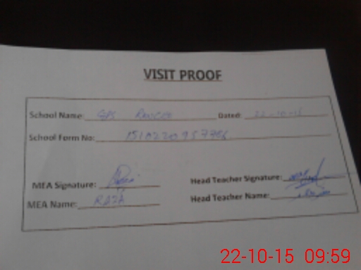 | Attendance Register | Head Teacher | MEA with School | Visit Proof |