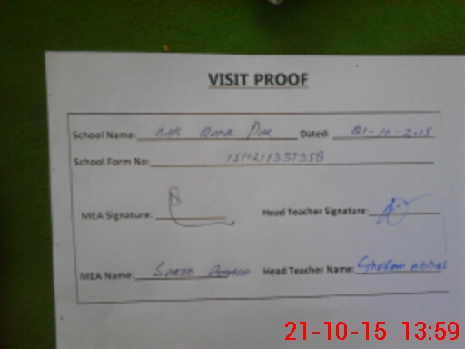 | Attendance Register | Head Teacher | MEA with School | Visit Proof |
