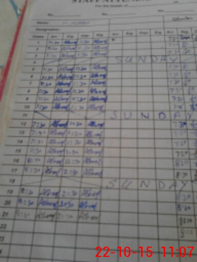 | CNIC | Full Name | Designation | R/C | Absence During Last Calender Month |