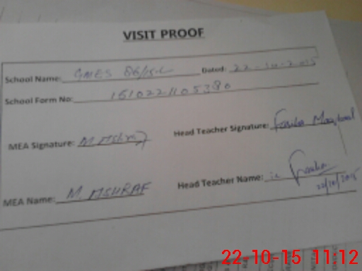 | Certified that this School was Inspected by the Undersigned MEA/DMO Today and the Information Stated Above is as Per Record. | |||||