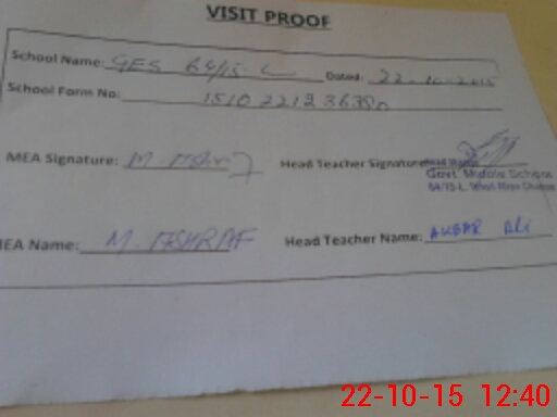 | Certified that this School was Inspected by the Undersigned MEA/DMO Today and the Information Stated Above is as Per Record. | |||||