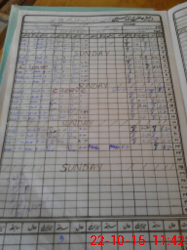 | CNIC | Full Name | Designation | R/C | Absence During Last Calender Month |