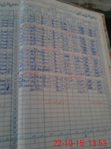 | CNIC | Full Name | Designation | R/C | Absence During Last Calender Month |