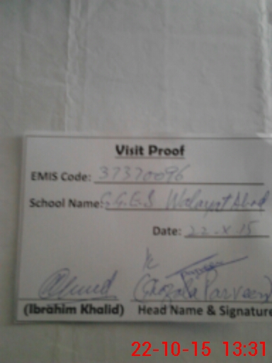| EMIS Code: 37370096 | Name of School: GGHS WALAYAT ABAD | |||