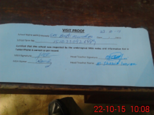 | Attendance Register | Head Teacher | MEA with School | Visit Proof |