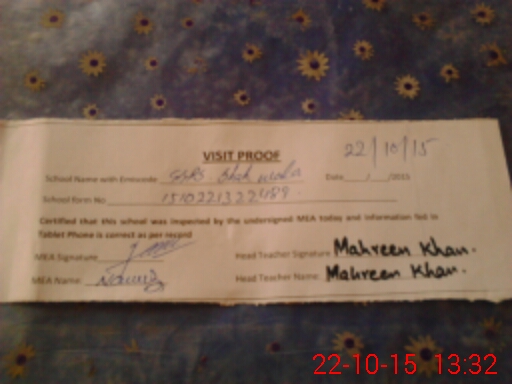 | Certified that this School was Inspected by the Undersigned MEA/DMO Today and the Information Stated Above is as Per Record. | |||||