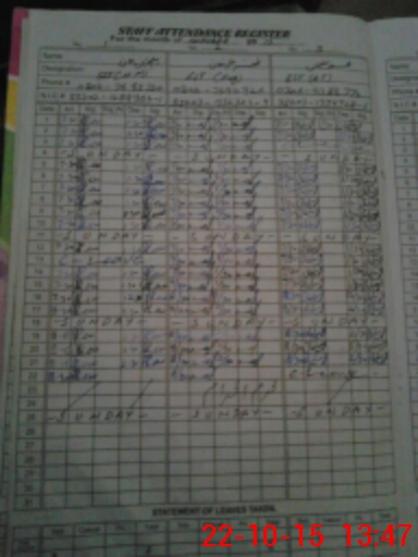 | CNIC | Full Name | Designation | R/C | Absence During Last Calender Month |