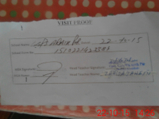| Attendance Register | Head Teacher | MEA with School | Visit Proof |