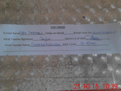 | EMIS Code: 37410266 | Name of School: GPS SADYALI | |||