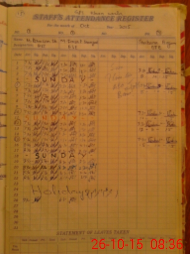 | CNIC | Full Name | Designation | R/C | Absence During Last Calender Month |