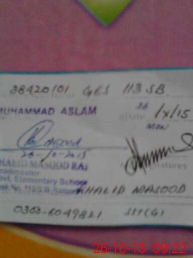 | EMIS Code: 38420101 | Name of School: GHS CHAK NO.113 SB | |||