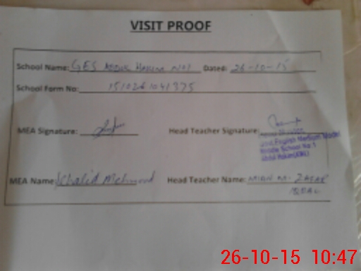 | Attendance Register | Head Teacher | MEA with School | Visit Proof |