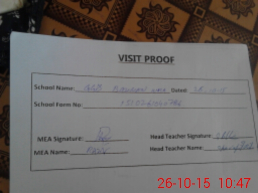 | Certified that this School was Inspected by the Undersigned MEA/DMO Today and the Information Stated Above is as Per Record. | |||||