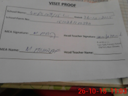 | Attendance Register | Head Teacher | MEA with School | Visit Proof |