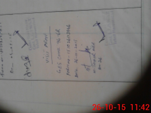 | Monitoring Date: 26-10-2015 | Start Time: 26-10-2015 10:50 AM | End Time: 26-10-2015 11:44 AM | Name of MEA: Mu**** Ta**** BN**** 26 | |