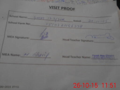 | Attendance Register | Head Teacher | MEA with School | Visit Proof |