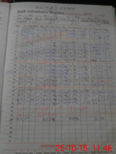 | Monitoring Date: 26-10-2015 | Start Time: 26-10-2015 10:51 AM | End Time: 26-10-2015 12:16 PM | Name of MEA: MU**** SH**** | |